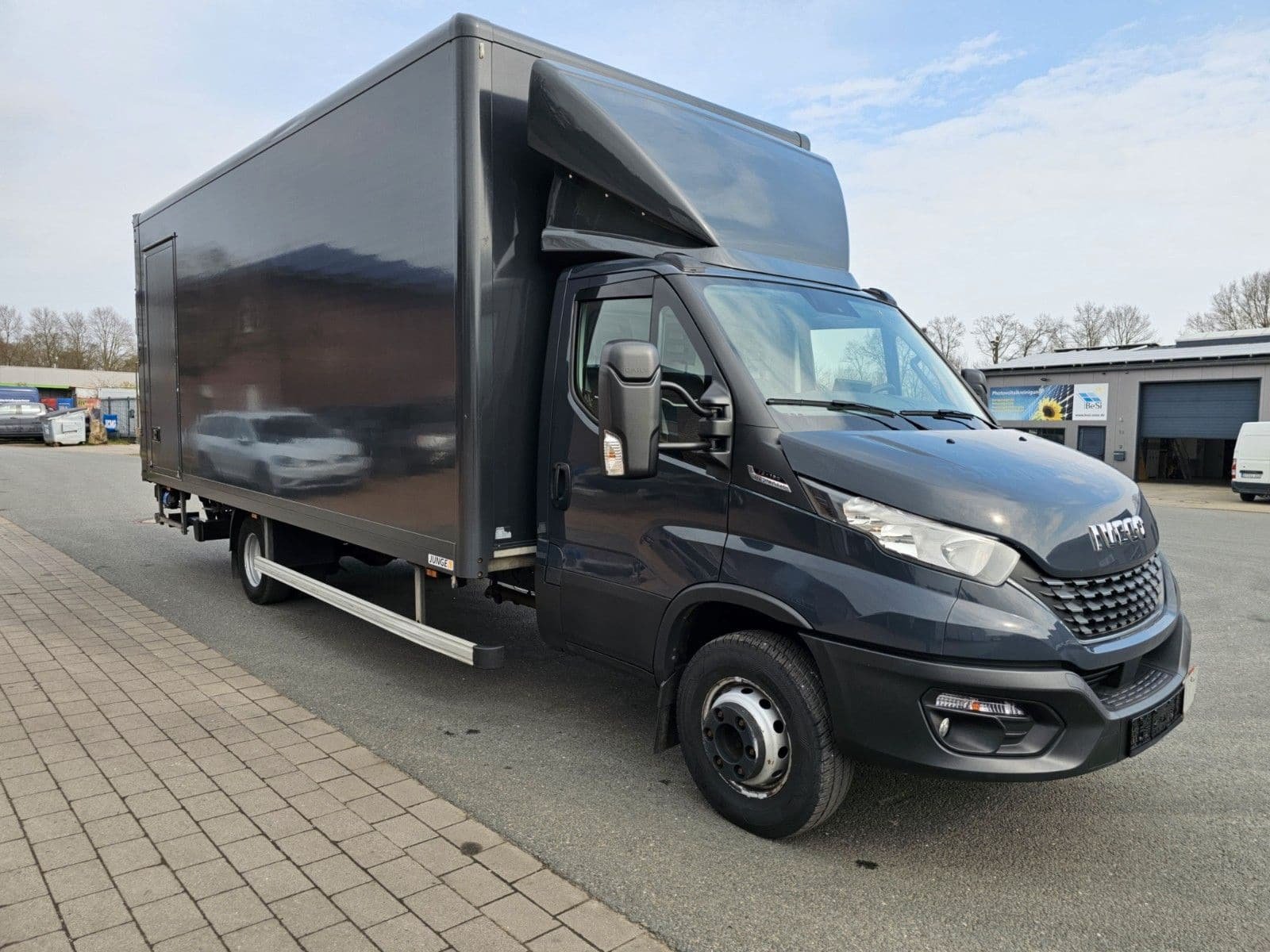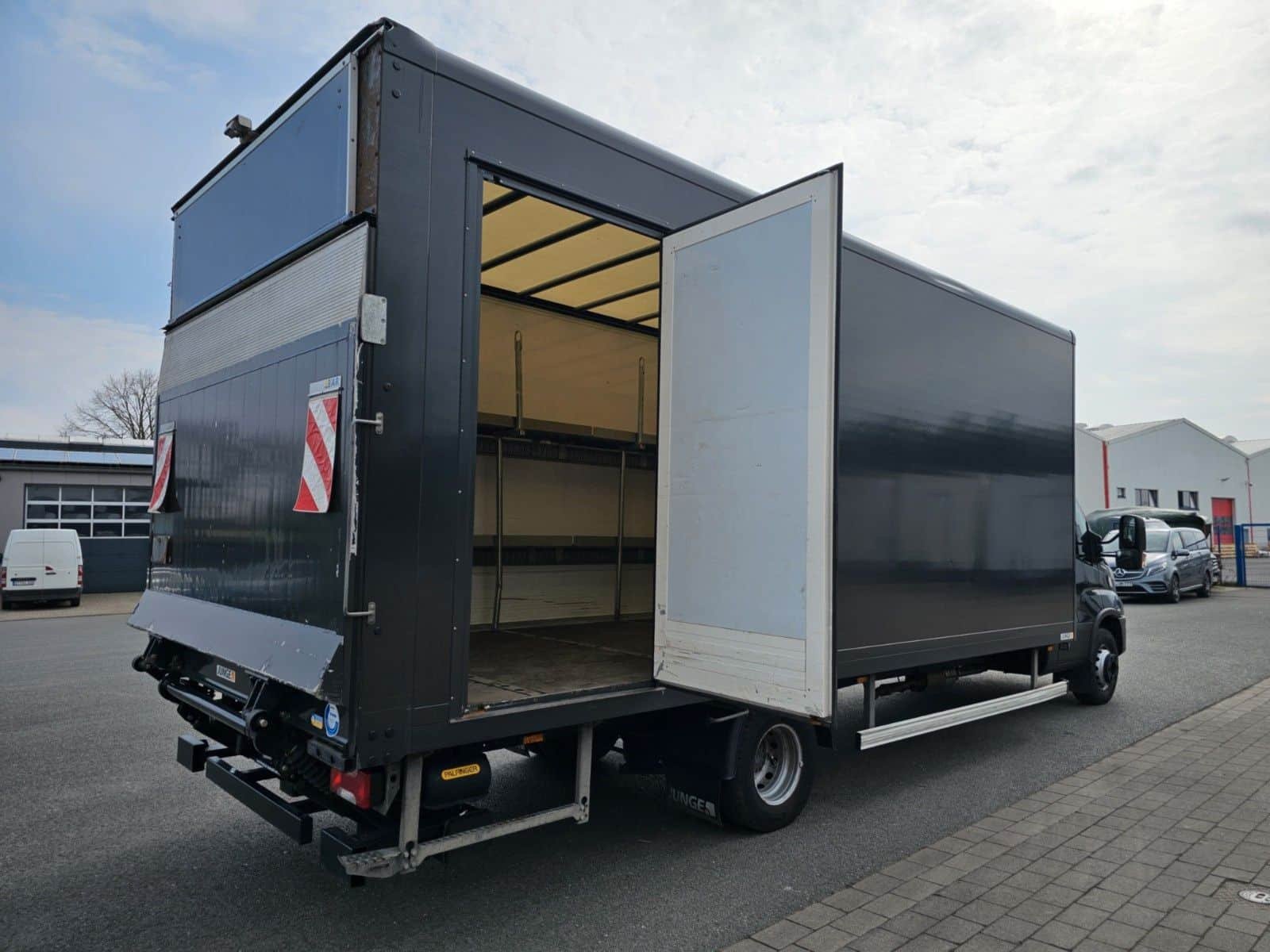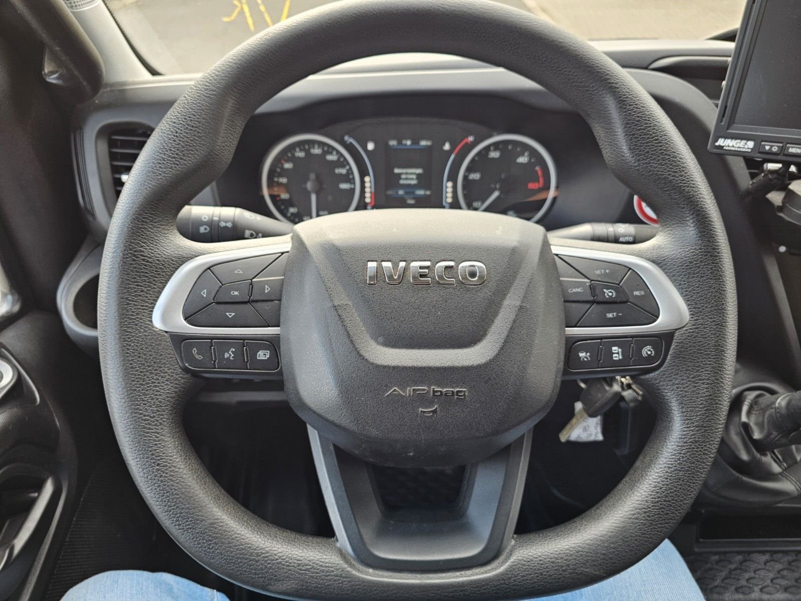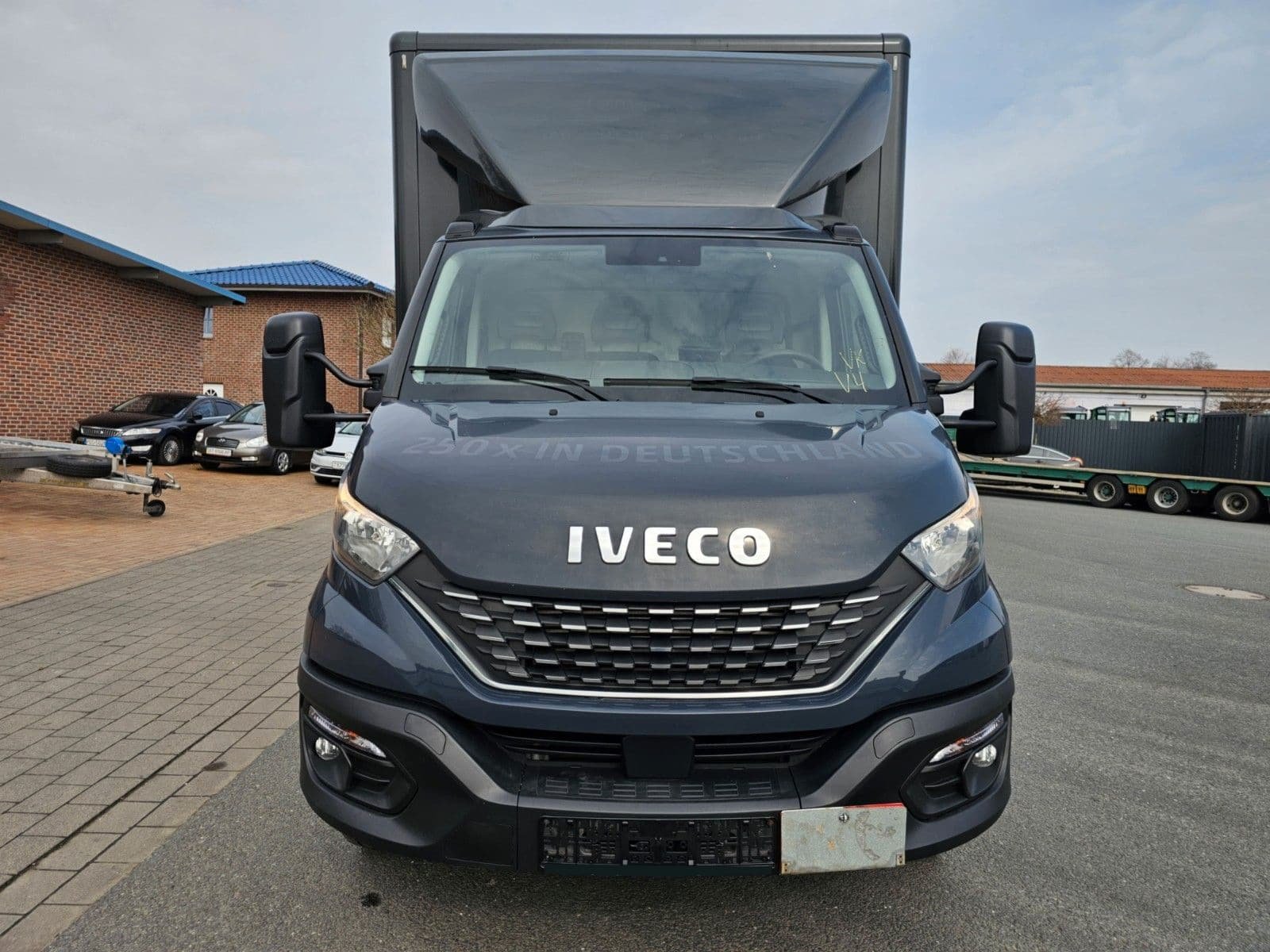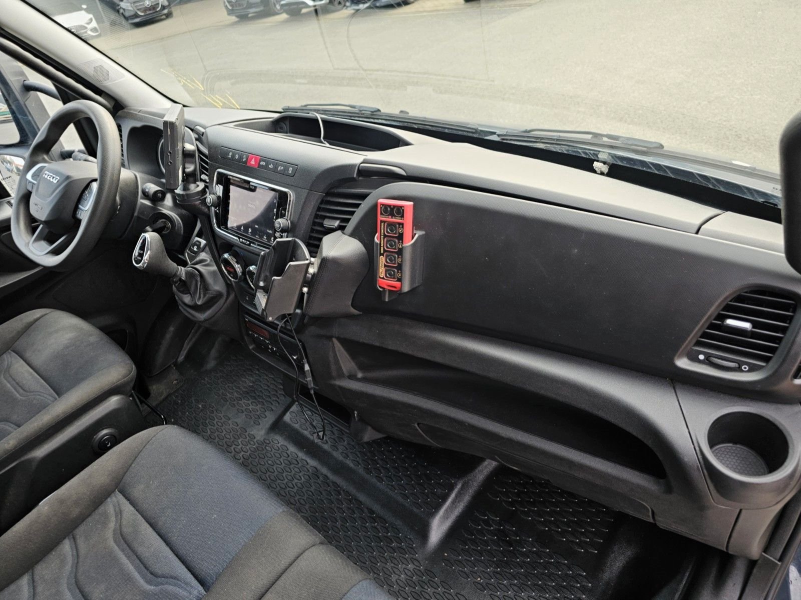 Ablage im Dachhimmel Fahrerhaus, Ablagefach auf Armaturentafel mit USB-Anschluss, Achslast Vorderachse 2,7 t, Audiosystem: Digitales Audiosystem (DAB) HI-Connect mit 7″ Farbdisplay und Navigation, Aufbauhersteller-Interface, Feststellbremse elektrisch, Klimaautomatik, Lenksäule (Lenkrad) höhen-/längsverstellbar, Licht- und Regensensor, Schalter für Beleuchtung im Laderaum, Schlussquerträger am Rahmenende, Schmutzfänger vorn, Sitze im Fahrerhaus: Fahrersitz Luxus, Traktion Plus (Elektron. Traktionskontrolle) mit Bergabfahrhilfe, Zusatzheizung (Warmwasser) mit Zeitsteuerung