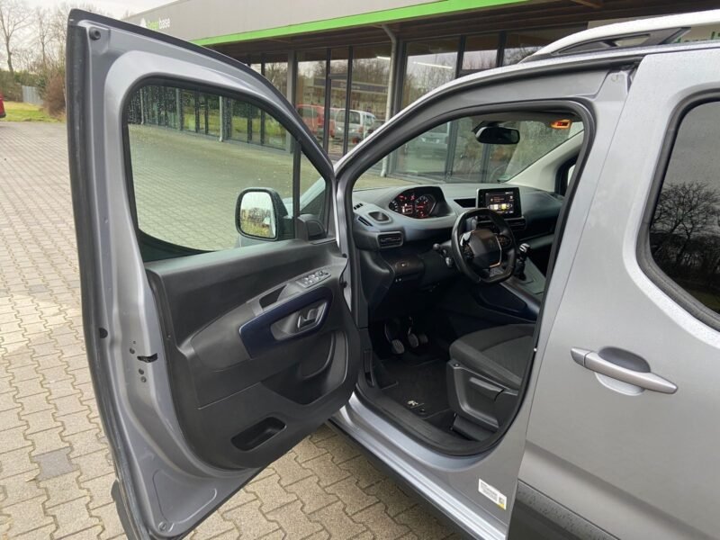 Ablagefach über den Sonnenblenden, Airbag Beifahrerseite abschaltbar, Airbag Fahrer-/Beifahrerseite, Audiosystem RCC DAB (Radio/CD-Player MP3-fähig), Autom. Begleitfunktion der Beleuchtung (Coming Home, Leaving Home), Außenspiegel elektr. verstell-, heiz- und anklappbar, Außenspiegel Wagenfarbe, Bordcomputer, Dachreling, Einparkhilfe hinten, Einschaltautomatik für Fahrlicht, Elektr. Bremskraftverteilung, Fahrassistenz-System: Berganfahrhilfe, Fensterheber elektrisch hinten, Gepäckraumabdeckung / Rollo, Heckklappe, Scheibe fest, Innenspiegel mit Abblendautomatik, Karosserie: 5-türig, Kindersicherung elektrisch, Klimaautomatik, getrennt regelbar Fahrer-/Beifahrerseite, Kopf-Airbag-System, Kopf-Airbag-System hinten, Lenksäule (Lenkrad) verstellbar, Motor 1,5 Ltr. – 96 kW Blue-HDI FAP, Parkbremse elektrisch, Radstand 2975 mm, Reifen-Reparaturkit, Reifendruck-Kontrollsystem, Schadstoffarm nach Abgasnorm Euro 6d-TEMP, Schaltpunktanzeige, Schiebetüren links und rechts mit Verglasung, SCR-System (AdBlue-Technologie), Seitenairbag hinten, Seitenairbag vorn, Sicherheits-Paket, Sitz vorn links höhenverstellbar, Sitz vorn rechts umklappbar, Sitzbezug / Polsterung: Stoff, Sonnenblenden mit Make-up-Spiegel, Stahlfelgen 7×16, Start/Stop-Anlage, Super-Zentralverriegelung mit Fernbedienung, Türentriegelung automatisch (bei Unfall), Türgriffe außen Wagenfarbe